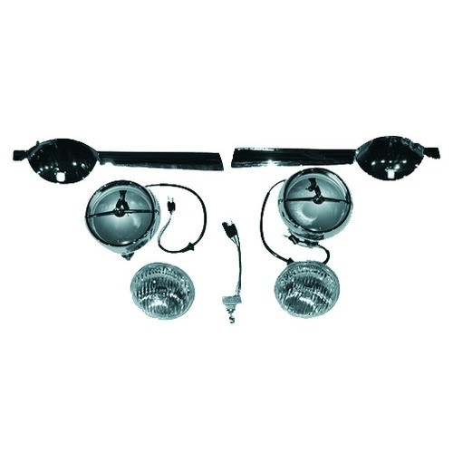 Both chrome plated bars, clear fog lamp bulbs with wiring pigtails, switch & wiring.