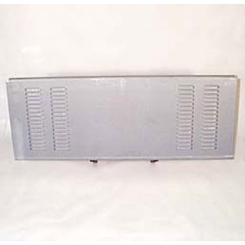 Full tailgate cover is made of 18-gage electro-galvanized steel and covers the entire outside portion of the tailgate. Original tailgate latch ears will have to be removed to install tailgate cover. They may be refitted after cover installation. It curves up over the top of the tailgate and down under the bottom. This tailgate full cover has four rows of 4" louvres. Made in Oklahoma City, USA.