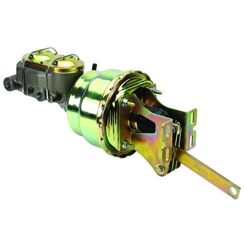Includes new booster, new dual reservoir cast iron master cylinder with firewall brackets and pre-calibrated booster pin. NOTE: Boosters require a minimum of 18” of vacuum for proper operation. If wanting power assist on your factory drum brakes a 1” b