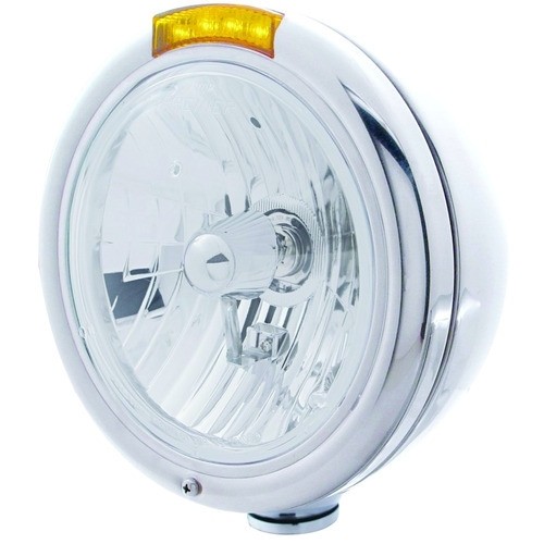 Chrome classic headlight with classic headlight bezel. Crystal H4 bulb with 4 amber LED turn signal light.