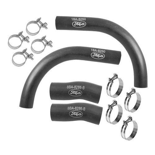 Includes 2 upper and lower hoses and 8 clamps. Hoses are Ford script and numbered as original. Clamps are original style. This is show quality.
