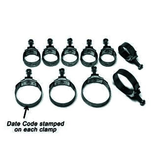 A must for any show, Hose Clamp Sets, with stamped date codes! These galvanized hose clamps are an authentic reproduction, each clamp is stamped with the correct date code. Sold in a convenient set of 10, they are Wittek concours correct.