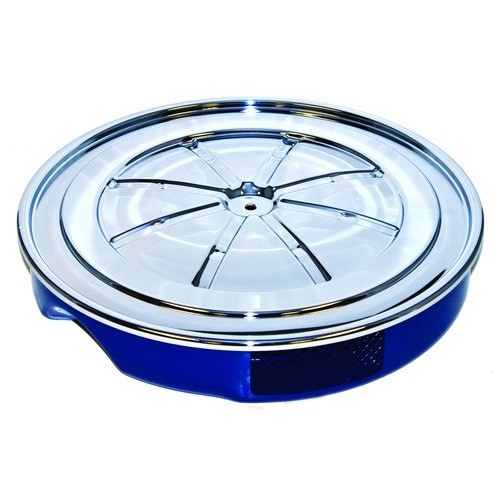 Made from original Ford Tooling, this air cleaner is a Concours Reproduction that includes blue base and chrome lid. This is also an excellent stock appearing performance upgrade for the very restrictive 68-70 390-428 Air Cleaners. Some early production 1