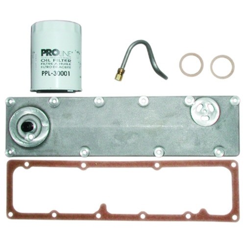 A-Ford-Able full flow oil filter kit. It will filter 100% of your engine oil. Special valve cover bolts on with no modifications. Only works with the later style of oil return pipe that measures 15" between the mounting bolt hole center.