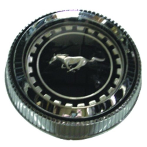 Chrome plated with black center and silver running horse in center. Vented cap.