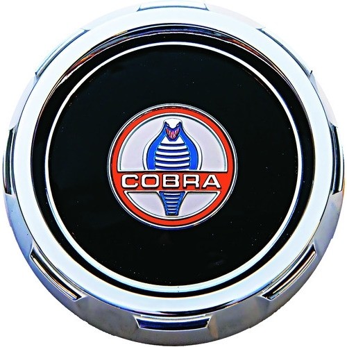 Features a plastic injected, chrome plated center emblem under a clear acrylic dome lens, surrounded by the classic chromed zinc die cast Shelby bezel. Will not fit the ‘70 car with CA emissions.