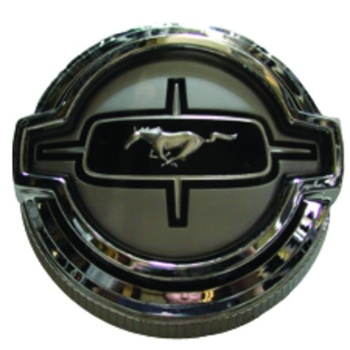 Chrome plated with running horse emblem in center. Security cable attached.