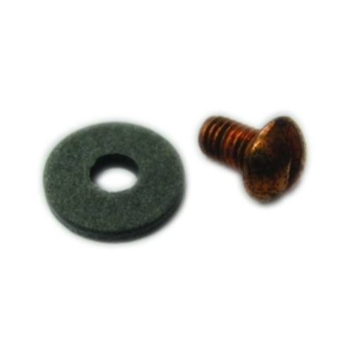 The copper 10/32 screw and fiber washer used to attach the condenser to the tab of the lower plate.
