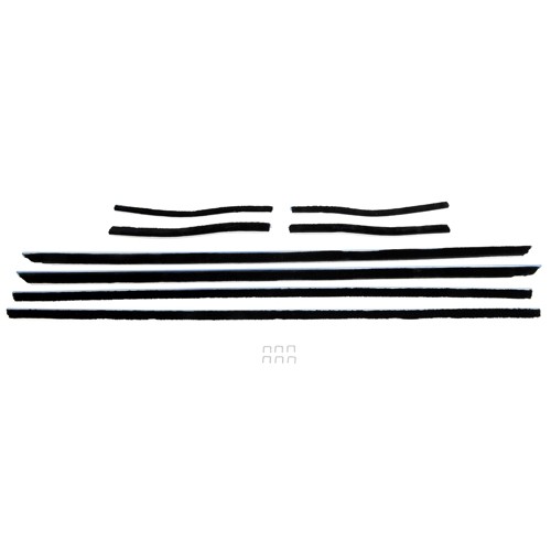 8 piece kit of inner and outer felts that protects the door from outside debris Replaces the cracked, chipped, or missing Weatherstrips to avoid interior damage Made with high quality materials that runs along the door glass Matches OE specifications for correct fitment