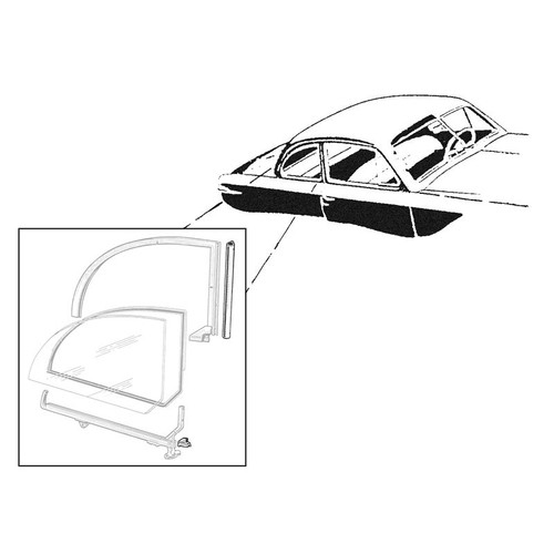 Molded with dog leg. Fits on front edge of rear window. Seals between the quarter window and the door window.